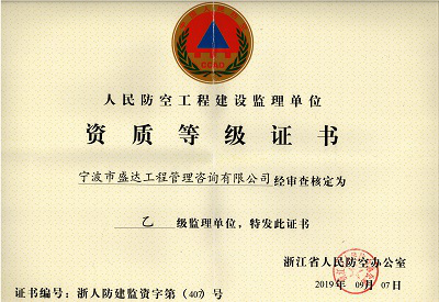 國家人防辦《人防工程監(jiān)理行政許可資質(zhì)管理辦法》(國人防〔2013〕227號)中第八條:人防工程和其他人防防護設(shè)施監(jiān)理許可資質(zhì)單位可以承擔的業(yè)務(wù)范圍:其中,第二款規(guī)定:乙級單位可承擔本行政區(qū)域內(nèi)抗力等級5級及建筑面積2萬平方米以下的人防工程監(jiān)理業(yè)務(wù)。